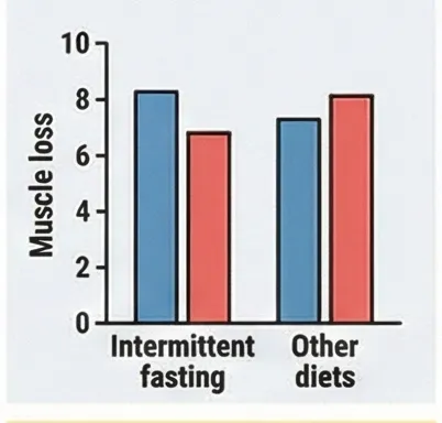 2023년 연구에 따르면 간헐적 단식과 웨이트 트레이닝을 병행한 그룹은 근육 증가량이 일반 식단 그룹과 동일했고, 근력은 오히려 더 높았어요.
