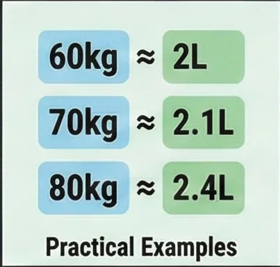 체중 80kg → 80 × 30mL = 2,400mL (약 2.4리터)