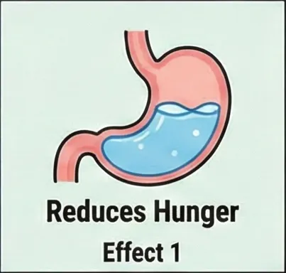 물을 충분히 마시면 위가 팽창하여 허기를 줄일 수 있습니다.