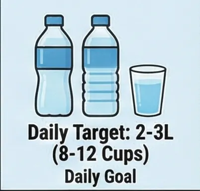 ✔ 하루 최소 2~3리터의 물을 마시세요