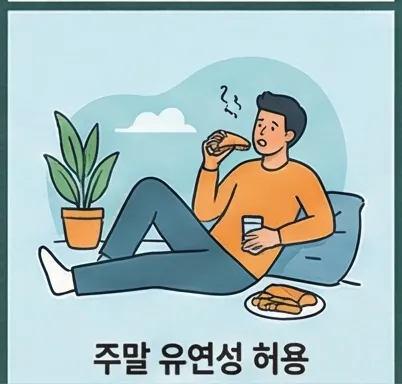 주말 유연성 - 주중에만 실천하고 주말엔 자유롭게 하는 것도 좋은 방법이에요.