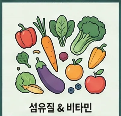 섬유질 - 채소, 과일로 포만감을 높이고 장 건강을 챙기세요. 하루 25~30g 목표로 하세요.