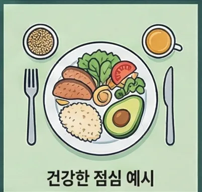 ✔ 영양 균형을 지키세요 - 식사 시간에 단백질, 건강한 지방, 복합 탄수화물을 골고루 섭취하세요.