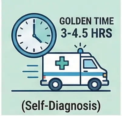 뇌졸중은 **골든타임 3~4시간 30분** 내에 치료받아야 후유증을 최소화할 수 있습니다.