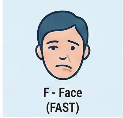 **F (Face - 얼굴)**: 웃을 때 한쪽 입 꼬리가 올라가지 않거나 처지나요?