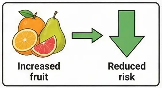 과일: 하루 섭취량 200g 증가 → 뇌졸중 위험 **32% 감소**