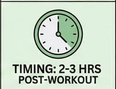 운동 후 2~3시간 이내: 과거에는 30분 이내 '골든 타임'을 강조했지만, 최근 스포츠 영양학계에서는 하루 전체 총 단백질 섭취량을 맞추는 것이 훨씬 중요하다고 밝혀졌습니다.