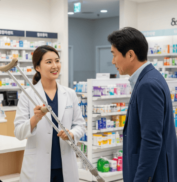 약사님이 높이 조절과 사용법을 친절하게 알려주시니 초보자도 안심이에요.