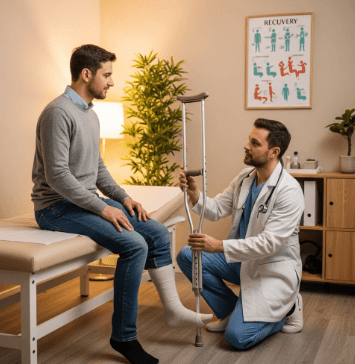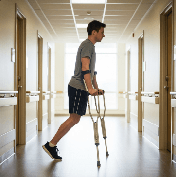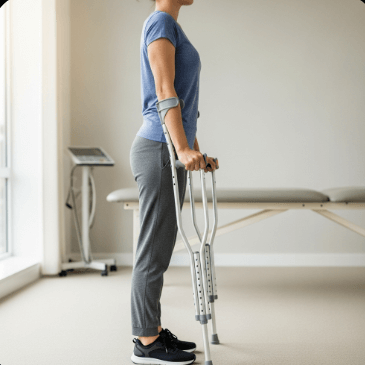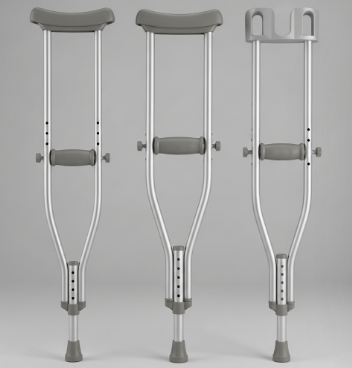✅ 발목 염좌, 경미한 골절: 겨드랑이형 목발 (2~4주 단기 사용)