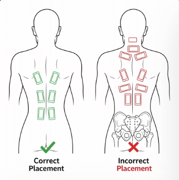 양쪽 패드는 통증 부위를 중심으로 5~10cm 간격으로 배치합니다.