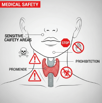 목 앞쪽(갑상선 부위)은 피해서 사용하세요.