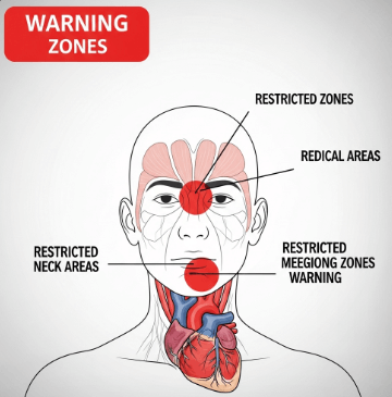 ❌ 얼굴이나 목 부위 (근육 긴장도 증가, 뇌 영향 우려)