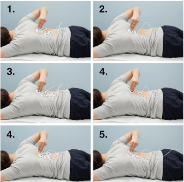 Step 2. 패드를 통증 부위에 밀착시켜 부착해요. 패드 사이 거리는 5-10cm 정도가 적당해요.