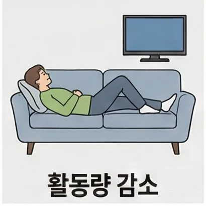 • 활동량 감소: 관절 문제, 체력 저하로 운동량 부족